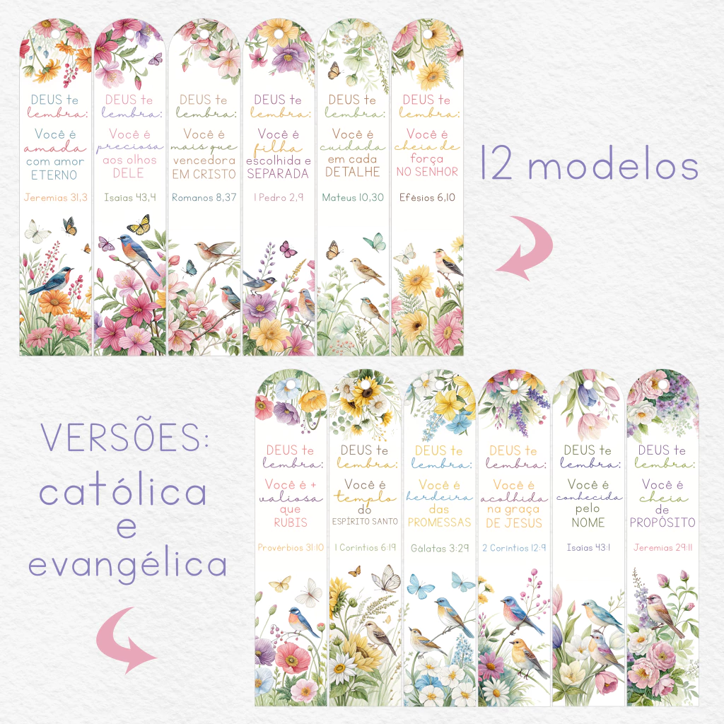 12 artes para marcador - JPEG - Versão católica e evangélica- 3,4 x 14,4cm